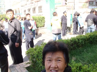 朝阳公安局治安队的警察跟野靖环等人早就认识,他们不断的劝说让大家回去,大家坚持要看到王秀珍才能走。因为王秀珍在2009年3月4日被新源里派出所安所长用巴掌抽脸,把王秀珍的脸打得青紫,肿的老高。所以,我们有理由认为,不让王秀珍与大家见面是因为她可能被打伤。一直僵持到11点半,才同意让我们派一个人跟王秀珍见面。刘秀贞跟警察进到院子里,原来王秀珍被关押在院子里的警务室,好几个人看着她,不许她出来。王秀珍对刘秀贞说:她也为我们着急,都到中午了,也没处喝水,等回到家都得很晚了。她没有挨打。