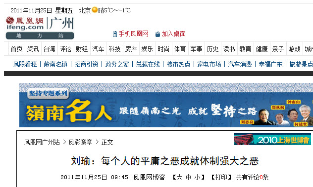 最近我常想起“恶之平庸”这个词。原因是近期的临沂陈光诚事件:一个曾经的盲人维权者,在一个叫做东石古村的地方,被当地政府派人层层封锁在家,既不允许他出来,也不允许别人去看望他——但凡有人去看望,就被暴力驱赶,以至于有人戏称该神秘村庄已经成了中国著名的探险胜地。