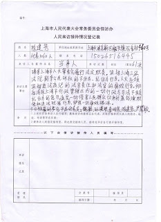 上海市人大105接待室出现了王福妹事件后马上关门不接待了,5名市民代表手里拿着《维护公民诉权,清除司法不作为2012年7月23日第61次集体访上海市人大的市民签名单》和《上海市人民代表大会常务委员会信访办人民来访接待情况登记表》没人接收。