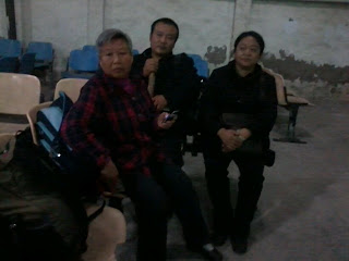 成都访民李廷惠左、李华成中、周成群右和曾少梅在北京府右街派出所的情景
