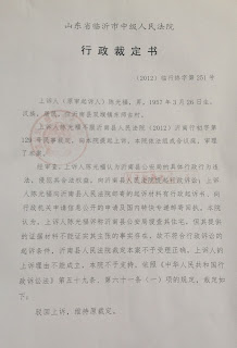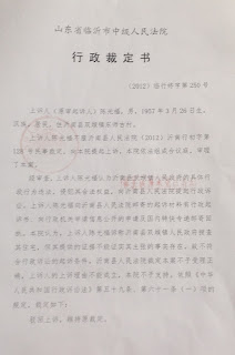 据陈光福透露:沂南县法院向他送达了山东省临沂市中级法院(2012)临行终字第250号和251号两份《行政裁定书》称:本院认为,上诉人陈光福诉称沂南县双堠镇政府(251号裁定书是‘沂南县公安局’)搜查其住宅,但其提供的证据不能证明其主张的事实存在,故不符合行政诉讼的起诉条件,沂南县法院裁定不予受理正确,上诉人的上诉理由本院不予支持,驳回上诉,维持原裁定。