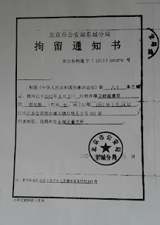 (维权网信息员田静民报道)8月3日,江苏邵云黎、河南王群凤带汽油到天安门准备自焚,被天安门分局抓走后一直没有下落。通过维权网信息员多方查询得知,邵允黎家属已拿到刑事拘留通知书,目前被羁押在北京市东城区看守所。