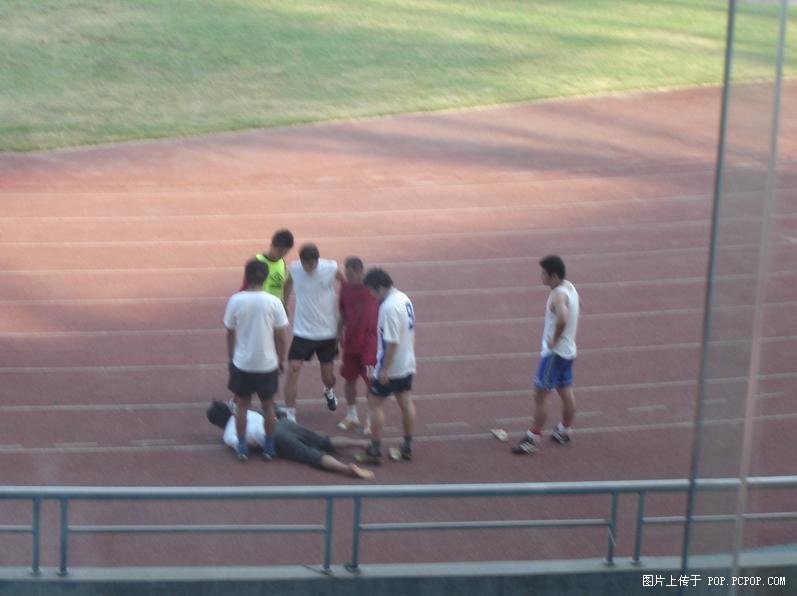 Reporters’ Home section at Xici.net ran a group of photos capturing Fan Zhiyi, captain of China’s national soccer team and a Mr. Football Asia, joining his teammates during a training session in beating and kicking a stadium worker who, ignorant of the training schedule, was watering the grass on the training turf. (The resolution of the photos may not be self-evident to confirm that the man referred is Fan, and some comments asked about the verifiability of Fan’s identity in the picture.) This photo here shows Fan running up to join his teammates around the downed guy, and immediately starting to violently kick him. And a hundred or so trained guards at the stadium looked on as bystanders without going up to stop the gang violence on one individual.