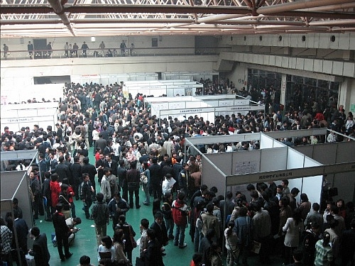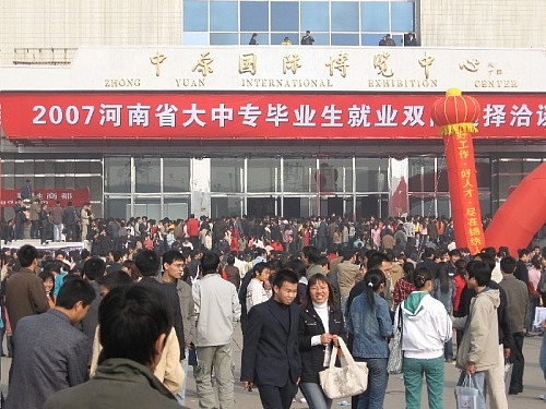 The Washington Post reported the Employment Fair in Zhengzhou on November 19, 2006. “A tide of more than 30,000 students with polished r√©sum√©s and high hopes surged into a job fair here so eager to meet with employers that they shattered four glass doors and splayed the side walls of an escalator in what became a near riot.”