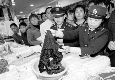 From Reuters via PlanetArk.org (Beijing officials testing towels at a small commodities market, via thebeijingnews.com):