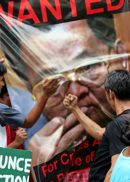 [Image source: Filipino protesters hit a poster of Myanmar’s military junta leader General Than Shwe during a rally in Manila, Philippines yesterday. Associated Press]
