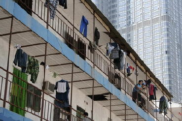 Photo: Workers stand on a temporary dormitory at the Central Business District in Beijing September 2, 2007. China’s 120 million migrant workers, the young generation in particular, are demanding higher wages and a better working environment, the Labour Ministry said. [Agencies] – from China Daily.