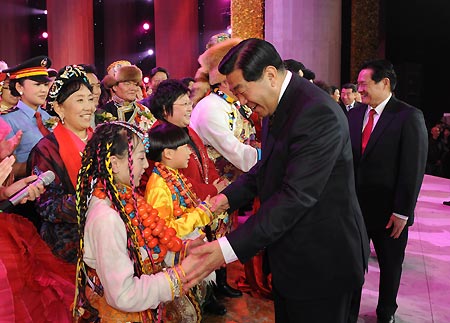 A gala was held Saturday in Beijing to celebrate the 50th anniversary of the emancipation of Tibetan serfs. Top political advisor Jia Qinglin and other senior officials watched the performances.