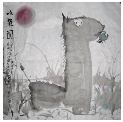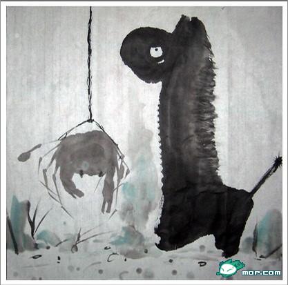 Chinese bloggers have been posting the following series of traditional-style paintings of Grass-Mud Horses and River Crabs: