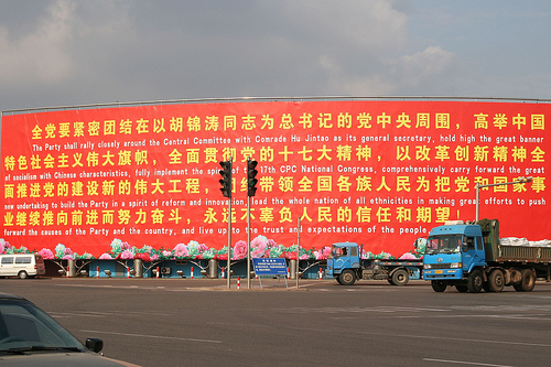 Photo: Billboard declaring the mission of the CCP, at the Qingdao port, by Tom Spender