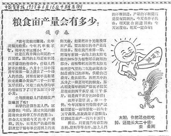 An article by Qian Xueshen in China Youth Daily, June 16, 1958 about the grain yield