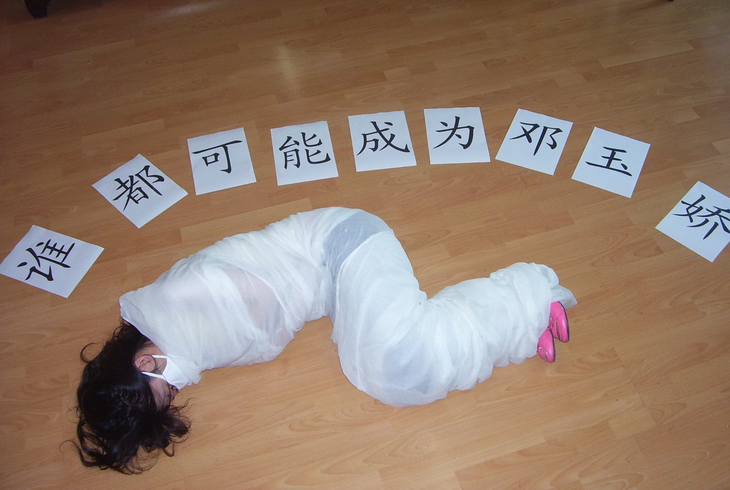 “I am not Deng Yujiao.” She turned her face towards the wall and used her hair and hand to shield herself like a frightened small animal who is afraid of her own name.