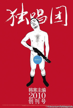 This is a poster for Han Han’s not-yet launched magazine: “Duchang Tuan” (独唱团) “Chorus of Solos.”