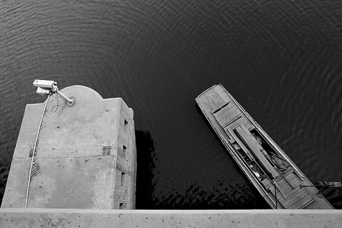 Photo: Boat beside a bridge abutment on the Haihe River, Tianjin, by rudenoon