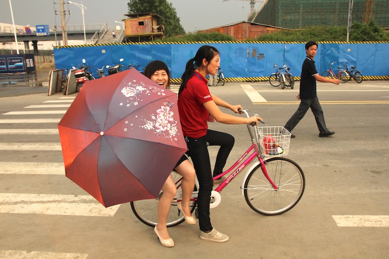 Workers outside the Foxconn factory in Chengdu, by Jordan Pouille