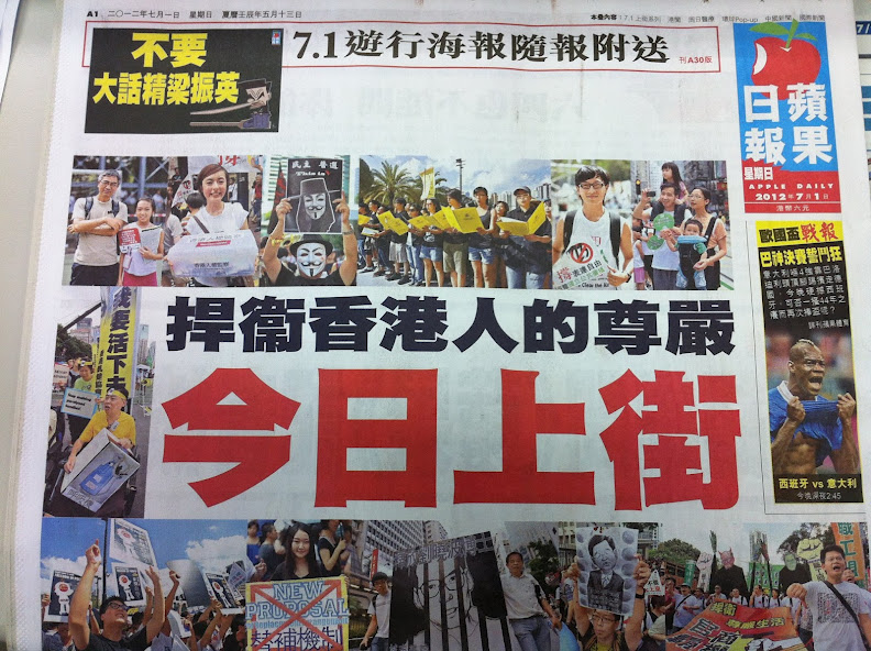 Protest in Hong Kong: July 1, the anniversary of the founding of the Chinese Communist Party (CCP), has also been day of protest in Hong Kong since the handover from British to Chinese in 1997. This year marchers voiced their anger at the news chief executive, Leung Chun-ying, whom they fear cares more about Beijing than Hong Kong. Besides his politics, it has also just come to light that Leung built HK$500 million (US$64 mil) of illegal structures on his various properties.