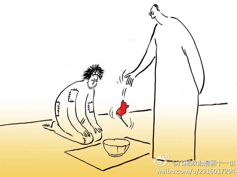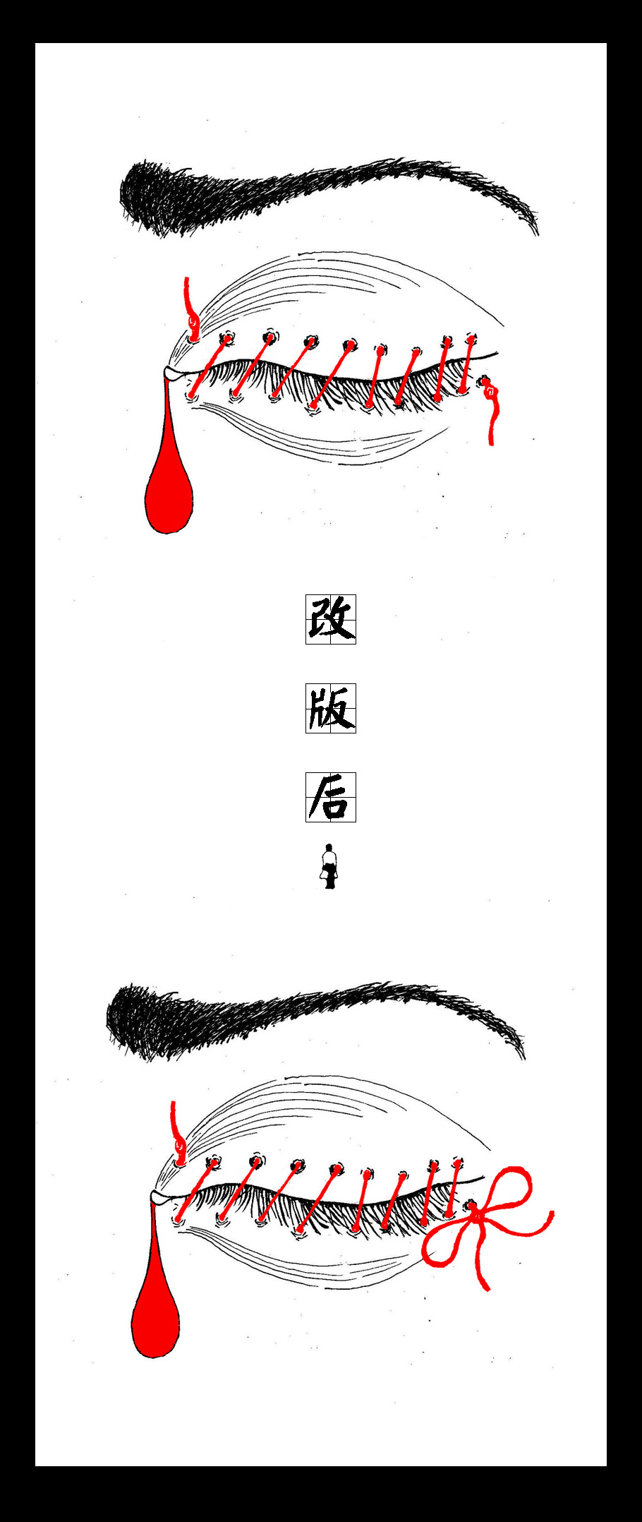 CCTV’s flagship evening news show, Xinwen Lianbo (News Simulcast), just announced an updated format which will include more “people’s voices” (民生) in its reporting. David 8th Generation (@大家画大卫8世) drew this cartoon to “congratulate” Xinwen Lianbo on the change. The eye at the top represents the show’s current programming. The format change will not open anyone’s eyes.