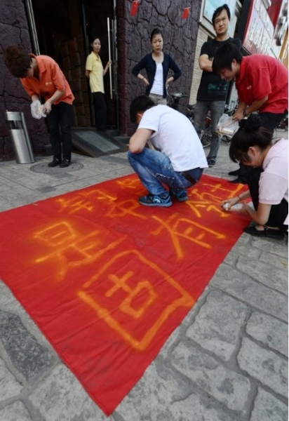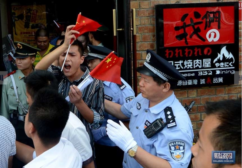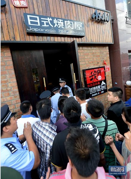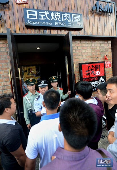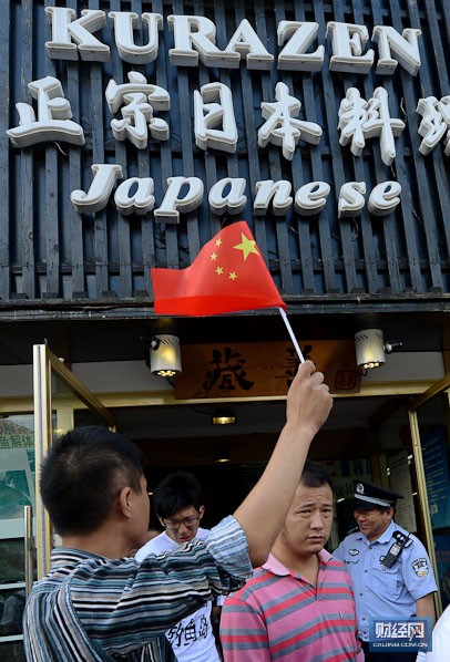 Yesterday, a group of anti-Japan protesters in Beijing were stopped by police when they attempted to attack a Japanese restaurant. To avoid confrontation, the employees of this restaurant hung a red banner reading “The Diaoyu Islands are China’s inherent territory.” This restaurant is Chinese managed, and the employees are also Chinese. Other Japanese restaurants in Beijing have put up signs insulting Japan: