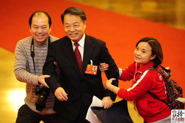 - March 8, Minister of Transport Yang Chuantang (center) is “intercepted” by reporters en route to an all-hands meeting. (NetEase)