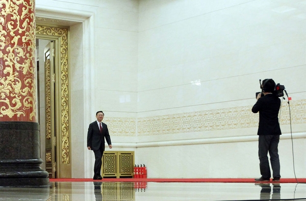- March 9, outgoing foreign minister Yang Jiechi makes his way to a press conference in the Great Hall of the People.