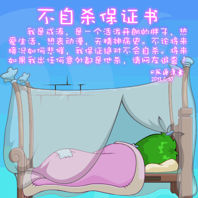 I am Cheng Tao. I’m a lively, cheerful fatso. I love life and animation. I have no history of mental illness. No matter how horrendous the circumstance, I promise to never commit suicide. Any mishap which may befall me is homicide, and I ask my fellow netizens to pursue the case!