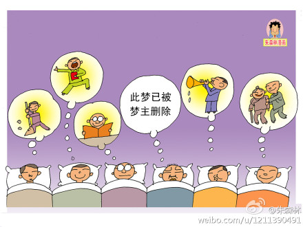 - While Xi Jinping speaks of a “Chinese dream” for the “great rejuvenation of the Chinese nation,” netizens have their own personal dreams: a good education, a career in music, or a happy retirement, perhaps. But the Chinese dream is for some, like Liu Xiaobo’s wife, Liu Xia, a nightmare. The reverie of the man in the middle had been revoked: all he has are the words “this dream has been deleted by the Dream Owner,” an invocation of the message received when a weibo is removed. (Zhu Senlin)