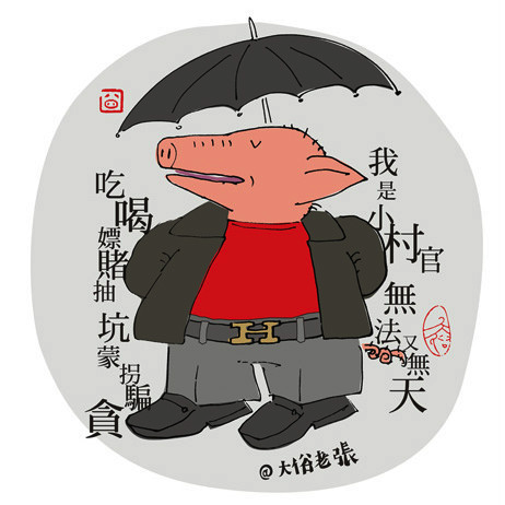 我是小村官,无法又无天。吃喝嫖赌抽,坑蒙拐骗贪。