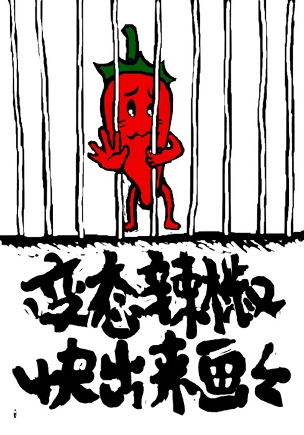 Cartoonist Wang Liming, a.k.a. Rebel Pepper (Biantai Lajiao), drew this in response and wrote a message to the authorities (from Twitter):