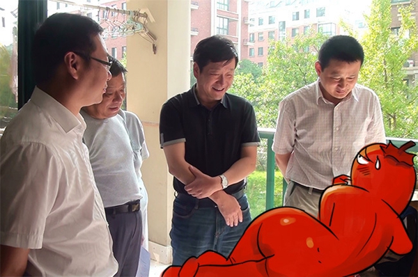 This photo of four Anhui officials “visiting” centenarian Cheng Yanchun went viral last week. Cheng appears as tiny as a doll next to the men. The officials actually did visit Cheng, but there was not enough space in her home to take a photo that fit everyone in the frame.