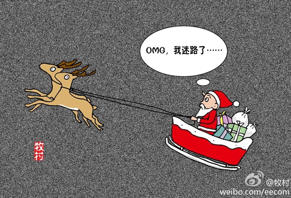 Santa loses his way in China’s smog. A Christmas joke in a similar vein has been making the rounds on Weibo: