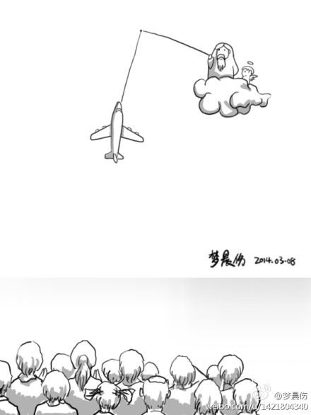 - “Sir, the search-and-rescue team has looked through all major social media sites for over ten hours, but still hasn’t found the location of MH370…” Should have tried Twitter. While posts about the missing flight continue to occupy top discussions on Weibo [zh], many posts have been deleted [zh]. (Xiao Guai/Weibo)
