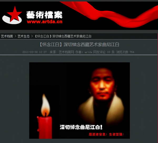 这是“艺术档案网”为江白设的纪念专栏:http://www.artda.cn/view.php?cid=30&tid=5042&page=1。有许多记录江白的艺术与生活的图片,以及江白的友人们怀念他的文字。