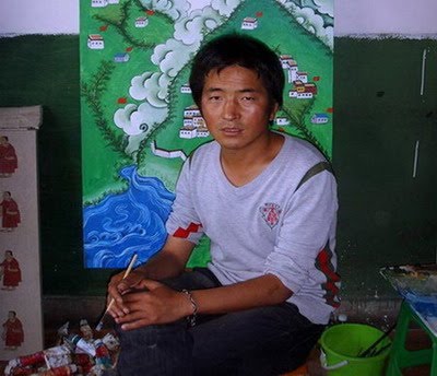 生活中的感悟承受着对现实的诉求,你用你的灵魂寻找通向目标勇气,这勇气是你对西藏的热爱与民族的责任。通过你的作品我们可以感受你对现实的真实感受,色彩纯净优美的画面中你独有的艺术语言在画面中展现理想与现实之间的艺术张力,或许你是因为一直生长在这里对每一个变化都有很敏锐的洞察力,这种洞察力将你拉到艺术创作中使你成为西藏当代艺术中一位不可缺少的艺术天才。你说你的语言是要讲述你看到的现实,是通过艺术作品表达内心真正的感受。你说你要在“艺术中表达真实,在真实中寻找艺术”而这一切都是“找”的一个过程。是的你真的去找了,因为你的执着我们发现了很多真相,因为你的那份最纯的爱我们感受了很多,虽然你的突然的离去让我们如此的无法接受,但你留给我们很多值得在意值得坚守的东西。