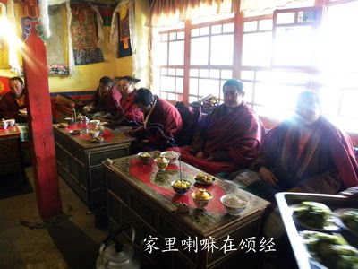 2011年3月30日,西藏,拉萨,墨竹工卡县,尼玛江热乡,江白家,喇嘛在颂经