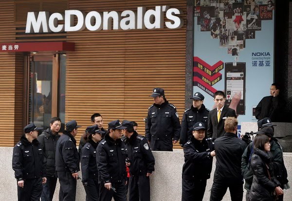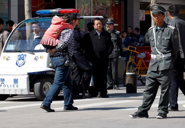【北京王府井,警察在严加防范。AP Photo/Andy Wong, File】