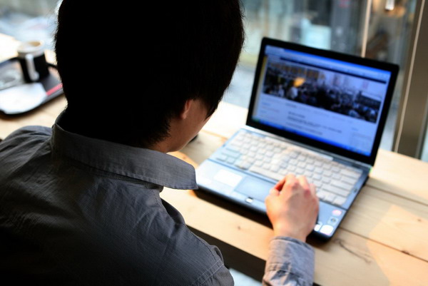 【网名为“森林智慧”的小伙子在查看他的网页。 AP Photo/Gillian Wong】