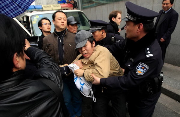 【上海抗议的群众被拘捕。AP Photo/Eugene Hoshiko, File】