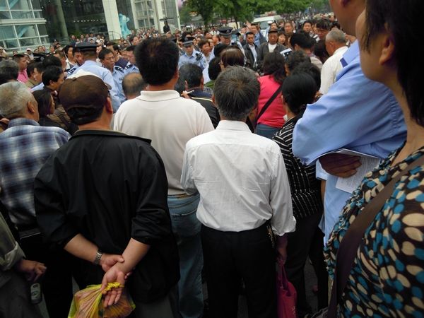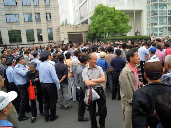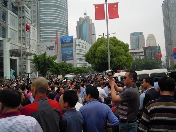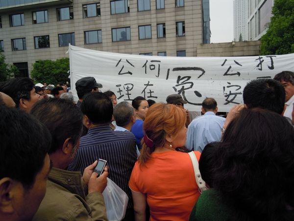 上海警察镇压市政府门前示威者引上千人围观(9图) 2011年5月12日 原文 (参与2011年5月11日讯)今天上午11时左右,有几人在上海市政府信访办门口拉起用白布做的横幅示威,横幅上写“公理何在,公安打死人”,中间一个很大的“冤”字。示威者刚拉起横幅,横幅就被警察抢走,示威者也被抓上警车带走,此事引起上千名群众围观。 [中国茉莉花革命发起者 http://molihuaxingdong.blogspot.com] 转载请注明出处 定期获得翻墙信息?请电邮订阅数字时代 所在分类:Uncategorized标签:茉莉,警察,上海,政府,示威,茉莉花 相关文章 新新新默存|王五四:我们终将成为一种历史奇观。 黑噪音|都去跑外卖吧!看着风景还能挣112万 风声OPINION|风声:“最忙五人组”暴露了一大堆匪夷所思的漏洞 【404文库】裱糊将|滨崎步上海空场独唱:千万垫资的灰烬里,站着最后的尊严 【404文库】达叔天演论丨香港火灾对比2010年上海胶州路火灾,层层转包、资金挪用、赔偿方案和房价后续