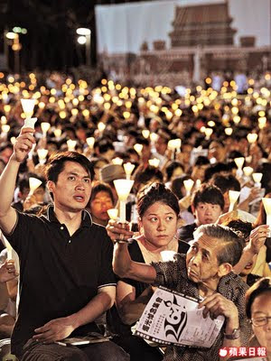【明報專訊】內地人來港不一定只為買名牌,愈來愈多內地人來港出席六四晚會,爭取公開悼念六四死難同胞的機會。22年前,北京人趙先生是留守天安門廣場的學生,6月3日晚回家吃飯,陰差陽錯,逃過軍隊清場一劫,但目擊坦克陸續駛經家門。同學罹難令趙先生十分難過,壓在心底多年,昨日終有機會來港出席六四晚會,他接受訪問時表示不擔心被算帳﹕「因為我本應在22年前已經死了,能活下來已是很幸運了。」來自東北的隋先生亦說﹕「真的非常羨慕香港這片自由天地。」