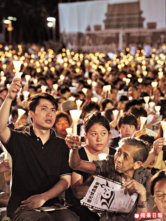 不肯拍照的深圳大學生蘇小姐首次參加六四晚會。她直言很多同學其實知道六四是什麼,她亦曾「翻牆」在網上瀏覽有關資訊,但認為總不及親身來一次香港看得清楚。她對六四的認識,始於父母簡單介紹,坦克、鎮壓、有死傷……她再想追問,父母總叫她不要再問,也不要告訴別人。待她長大了,明明身邊同學都知道這事,卻無法公開討論﹕「QQ、電話都被監控,根本不能說太多。」她昨日瞞着父母來港,先到城市大學,在民主牆上觀看六四的紀實,晚上參加燭光晚會。對於記者的追問,她顯得有點膽怯,自言只能當個旁觀者﹕「領導(平反六四)的事交給別人做吧。」