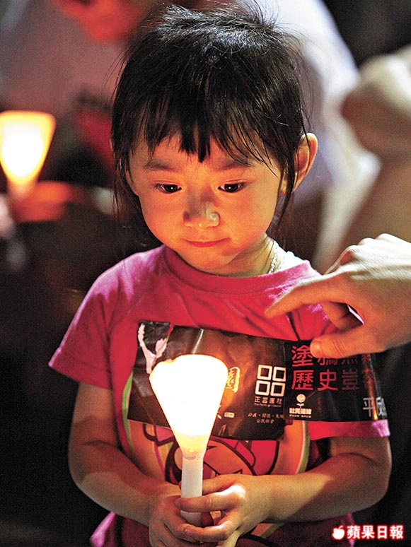 台北市民張先生:「廿二年前曾在自由廣場聲援北京學運,今年六四特意帶同兩歲的兒子參加紀念晚會。」