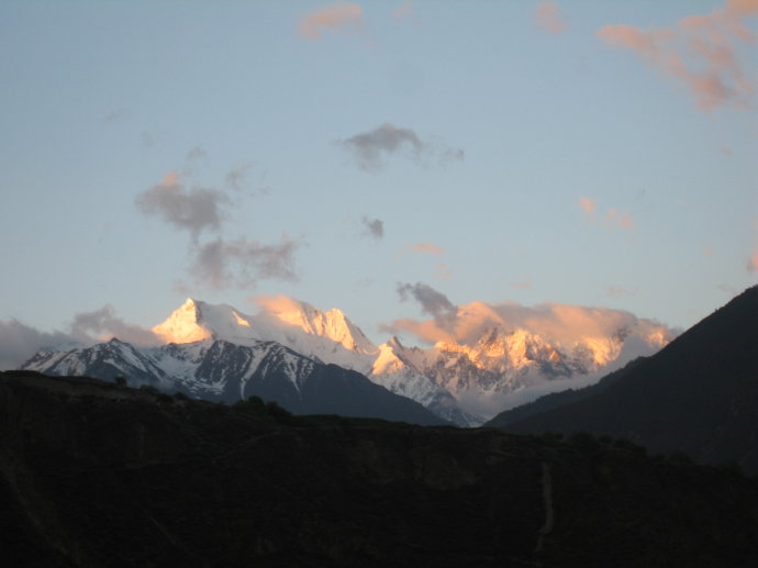 在公路靠雪山的一侧,修了不矮的围墙。本来在梅里往事窗户外面看出去一览无遗,现在,都是围墙喽