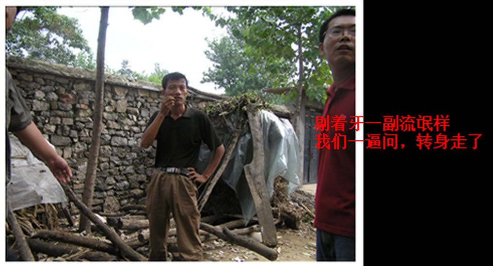 自由光诚! | 十八张老照片 (@郭玉闪) 2011年10月18日 原文 自 @郭玉闪: 这是2005年8月14日,东师古村。 我和滕彪、光诚一起驱赶看守的图解过程。 一个月后光诚从北京被绑架回临沂,从此再无自由至今日。 而门口的看守们也也升级换代到“极品流氓”级别。 拿着政府的工资,主要工作是殴打、抢劫每一个到东师古村旅游的游客。 原图链接(新浪) 本文由自动聚合程序取自网络,内容和观点不代表数字时代立场 定期获得翻墙信息?请电邮订阅数字时代 所在分类:Uncategorized标签:自由,滕彪 相关文章 城市的地得|2025年我明白的事 盘点六条|反对“封存吸毒记录”跟追求正义没一毛钱关系 【404文库】旧闻评论|铁路正能量惨遭羞辱 张3丰|砸窗的勇气,需要练习 【CDT报告汇】哨兵实验室:中国当局利用私营网安公司进行敏感词审查(外二篇)