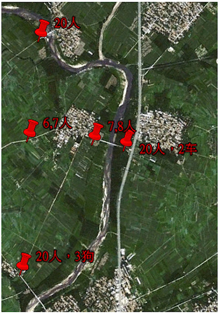 此条道另外还有2个监控点,第一个在205国道口,24小时约20人分两班常年驻守,仔细盘查进村的每一辆车和每一个人,路口有两间房子是看守们的值班室,旁边停着2辆车,一旦发现情况用来追击目标,承载打手.第二个在小桥边,常年7-8人,分两班。 2、从东师古往东南沿205国道约600米,
