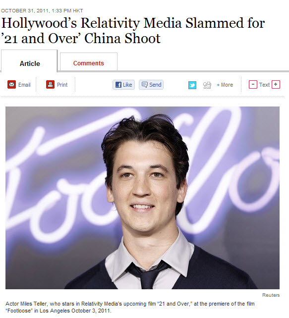 自由光诚! | 华尔街日报:好莱坞的 Relativity Media 在中国(临沂)拍摄《21岁派对》遭受猛烈抨击 2011年10月31日 原文 原文链接(英语) 本文由自动聚合程序取自网络,内容和观点不代表数字时代立场 定期获得翻墙信息?请电邮订阅数字时代 所在分类:Uncategorized标签:自由 相关文章 城市的地得|2025年我明白的事 盘点六条|反对“封存吸毒记录”跟追求正义没一毛钱关系 【404文库】旧闻评论|铁路正能量惨遭羞辱 张3丰|砸窗的勇气,需要练习 【CDT报告汇】哨兵实验室:中国当局利用私营网安公司进行敏感词审查(外二篇)