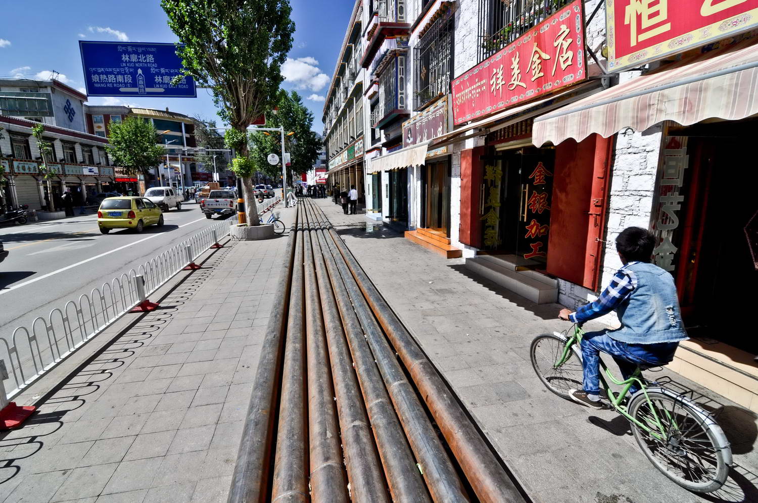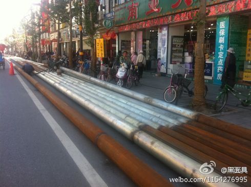 @黑面具 : 拉萨青年路的非机动车道己被这些水管占领了!