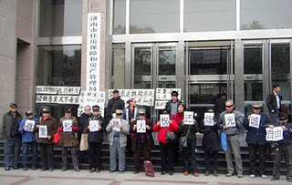 11月11日星期五晚18时,15位各界人士(11人拍照)在济南市山大南路小竹屋饭馆庆祝陈光诚四十岁生日。一则墙上挂着布慢,中间有一幅图:陈光诚在家中的照片,铁栅罩在上面。图上有二组标语:捍卫国家宪法,讨还社会公正,共和国不容践踏公民权利;抗议暴力恐惧主义,砸烂黑监狱;两边一幅对联:没有光万物皆枯,没有诚社会无稳;横批:遵宪守法;下面:祝你生日快乐,望你早获自由;还陈光诚自由。