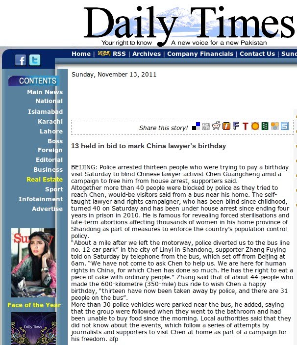 自由光诚! | 巴基斯坦每日报:以关押13人为标志,揭开中国律师生日序幕 2011年11月13日 原文 注:中国政府对陈光诚及其家人的“超法律”关押,对探访者的残酷手法,得到了全世界的关注和谴责。连中国政府由来已久的亲密朋友巴基斯坦都看不下去了。 2011年11月13日,《巴基斯坦每日报》转载法新社前日报道,题为:以关押13人为标志,揭开中国律师生日序幕 13 held in bid to mark China lawyer’s birthday 原文链接(英语) 本文由自动聚合程序取自网络,内容和观点不代表数字时代立场 定期获得翻墙信息?请电邮订阅数字时代 所在分类:Uncategorized标签:自由,陈光诚 相关文章 城市的地得|2025年我明白的事 盘点六条|反对“封存吸毒记录”跟追求正义没一毛钱关系 【404文库】旧闻评论|铁路正能量惨遭羞辱 张3丰|砸窗的勇气,需要练习 【CDT报告汇】哨兵实验室:中国当局利用私营网安公司进行敏感词审查(外二篇)