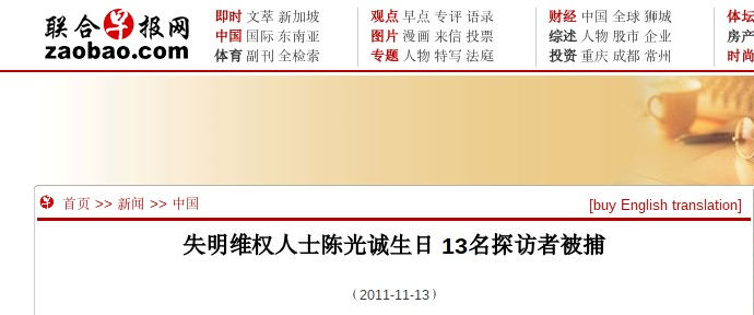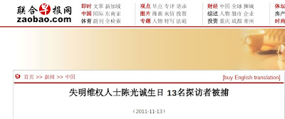北京讯)昨天是山东失明维权人士陈光诚的40岁生日,警方拘捕了13名试图探访他的支持者。