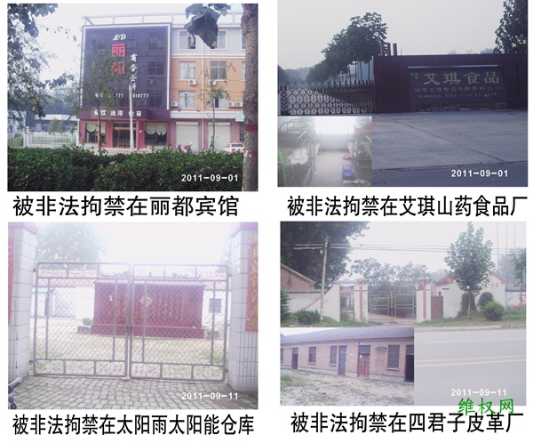 据悉,同时向单县人民检察提起控告的受害人还有郭娜和陈效兰。她们被关黑监狱达23天,期间不断变换关押地点。其黑监狱场所为:单县民兵训练基地、太阳雨太阳能仓库、单县林业局放蜂基地、丽都宾馆、单县四君子皮革厂、艾琪山药厂等多处。